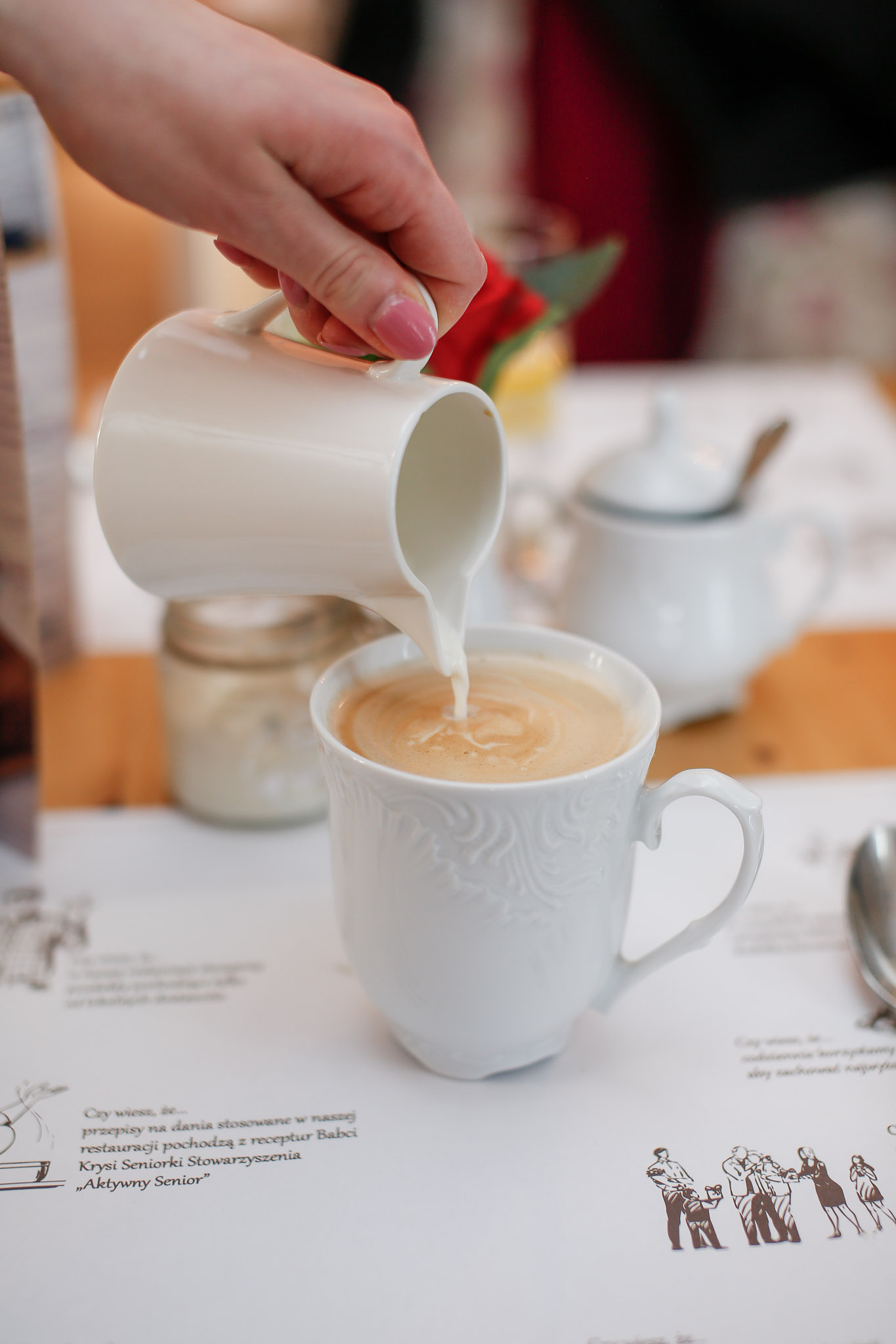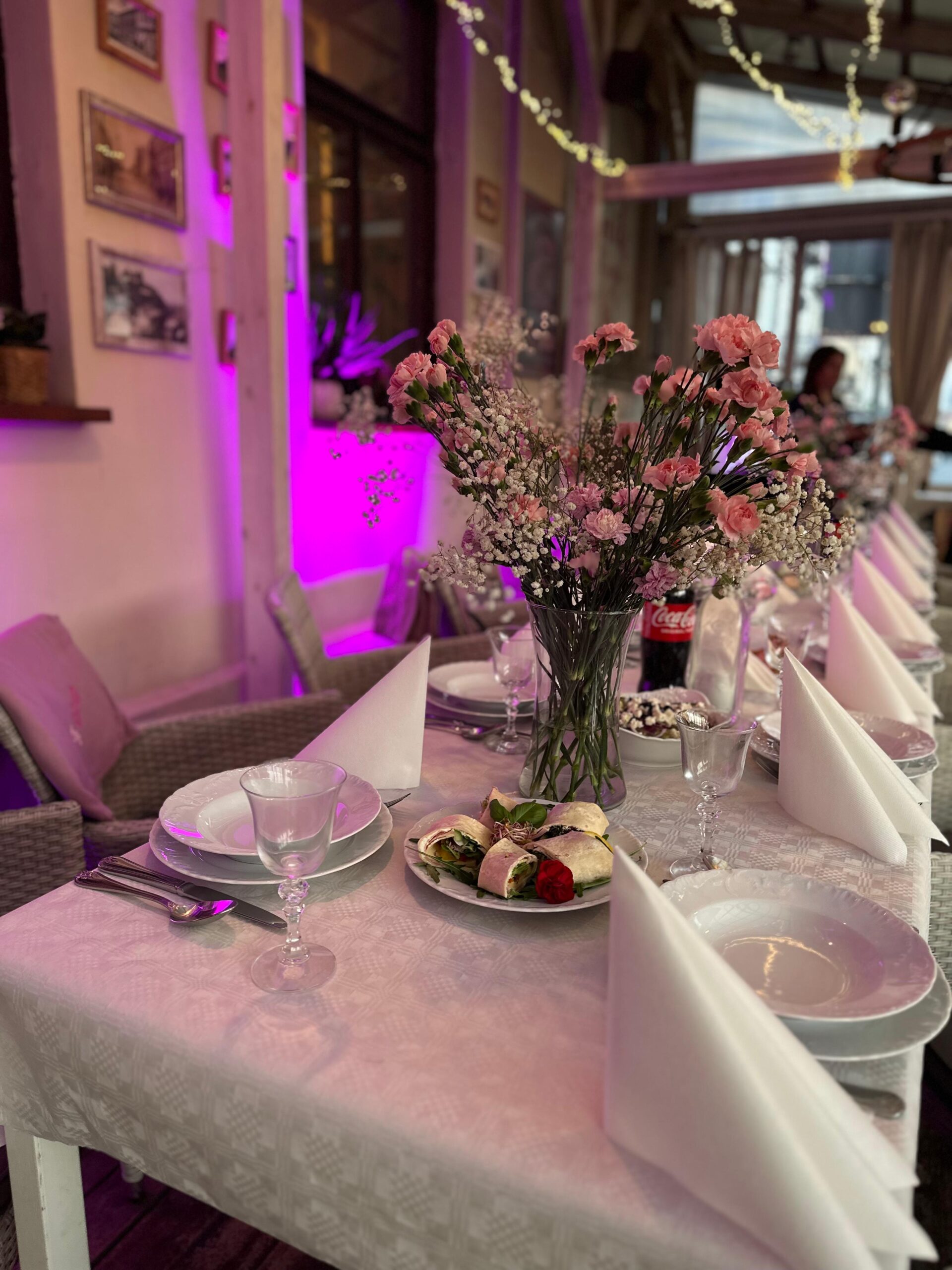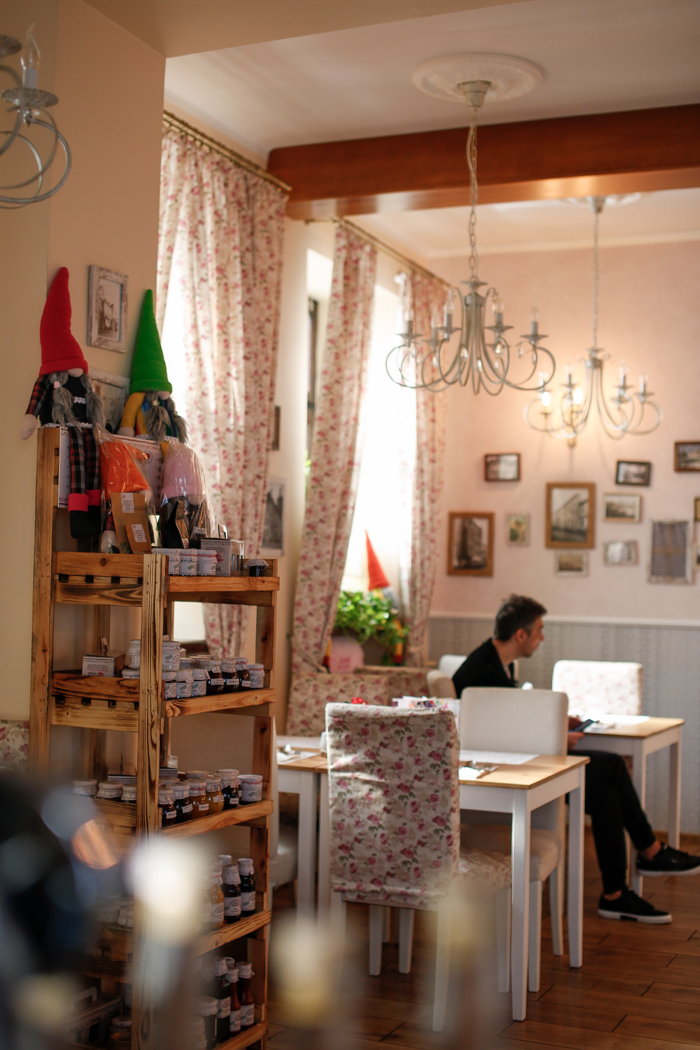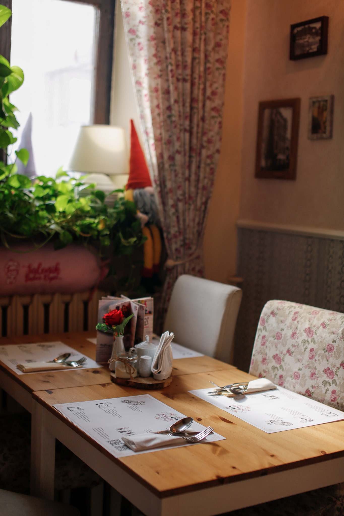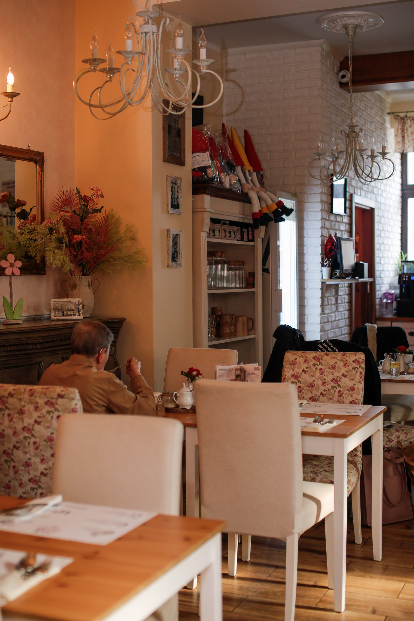 Wnętrze Saloniku jest klimatyczne, spójne i bardzo przytulne – z ciepłym światłem, stylowymi meblami i detalami, które budują nastrój. A ponieważ lubimy, gdy jest „na nowo”, dekoracje zmieniają się sezonowo, dzięki czemu każda wizyta może mieć trochę inny klimat, ale zawsze tę samą, domową energię.